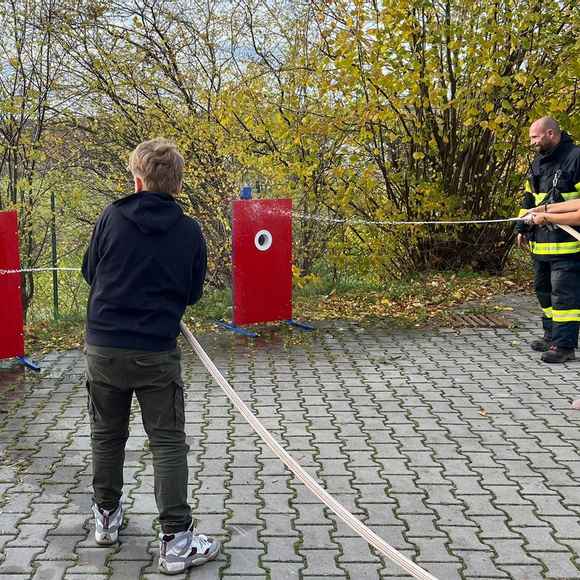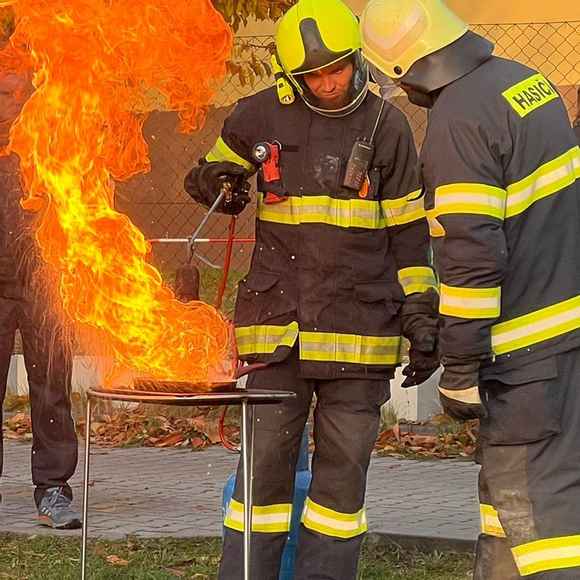 Závěr programu patřil ukázkám hašení – děti sledovaly, jak správně (a jak rozhodně ne) hasit hořící olej a jak se používá hasicí přístroj. Ukázky byly doprovázeny odborným výkladem, s důrazem na bezpečnost.
