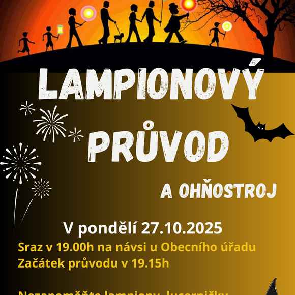Lampiónový průvod s ohňostrojem 27.10.2025