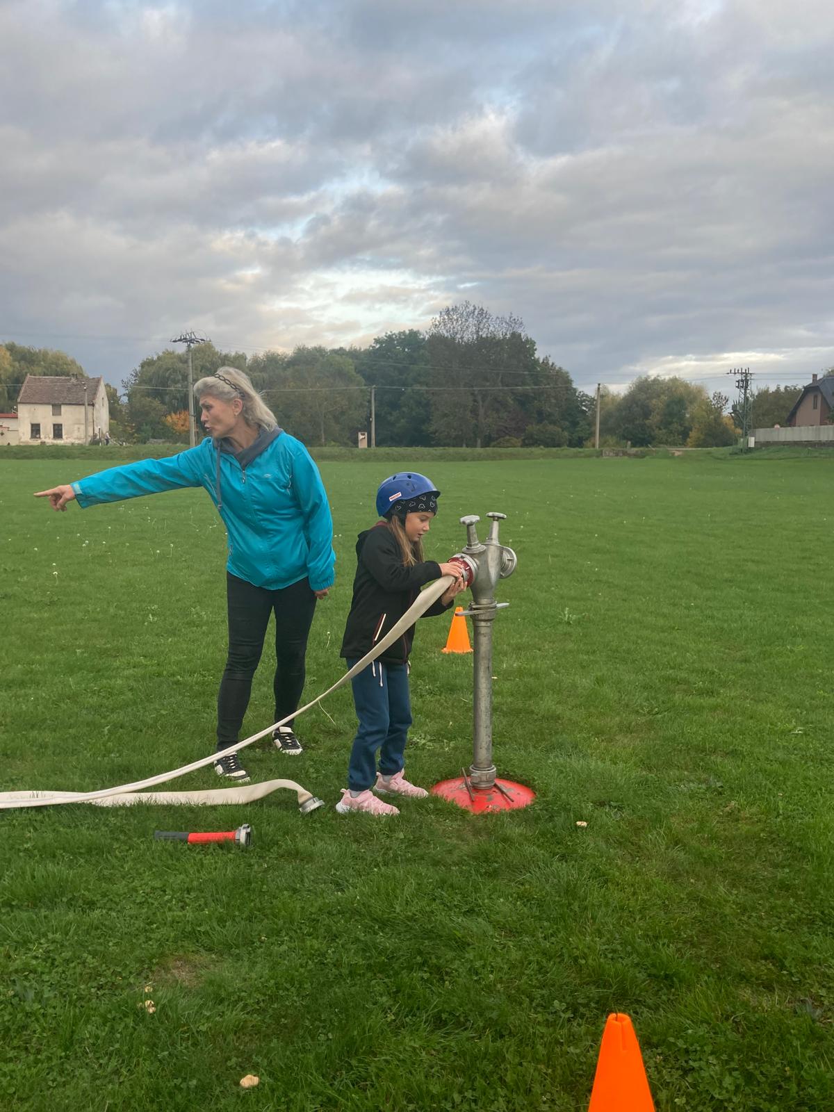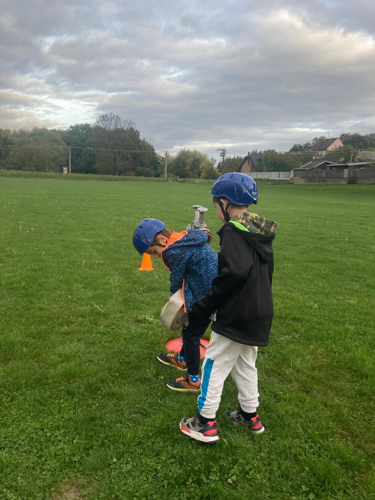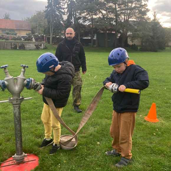 Dne 10.10.2025 bylo ještě slušné počasí a na trénink nás přišlo dost na dvě družstva, tak jsme trénovali štafetu požárních dvojic. Když došlo na stopky, probudil se v nás sportovní duch a pořádně jsme se vyhecovali! Soutěžili jsme spolu, ale byli jsme stejně dobří! Fandili jsme, div jsme neochraptěli, ale nakonec jsme vyhráli všichni - jak by ne, mít kamarády, to je to pravé! Tak příště AHOOOJ!