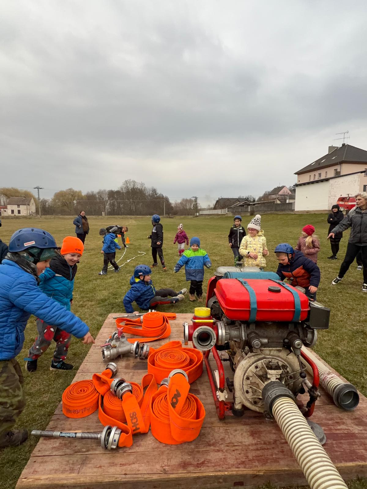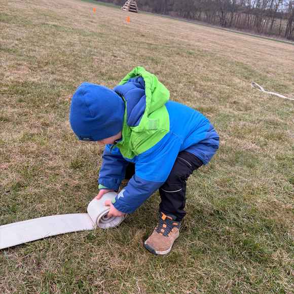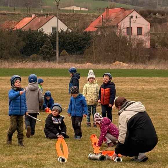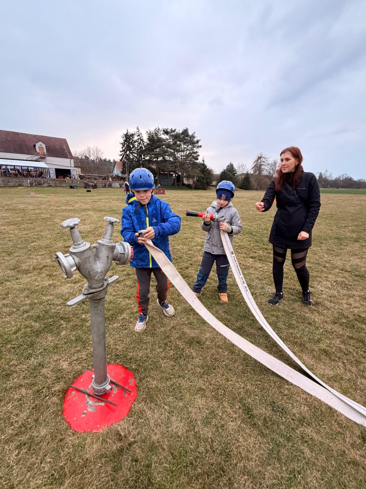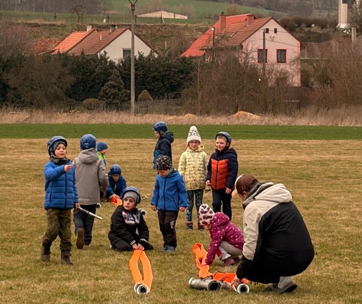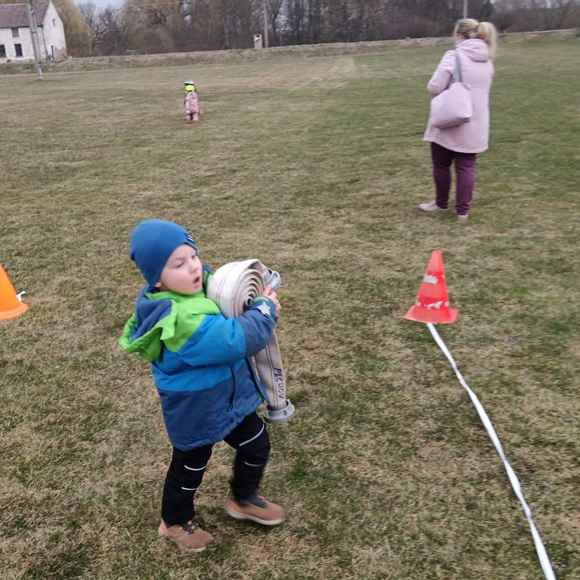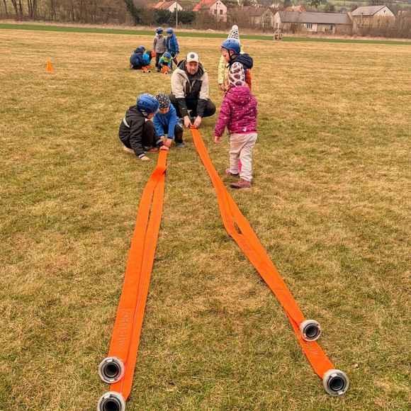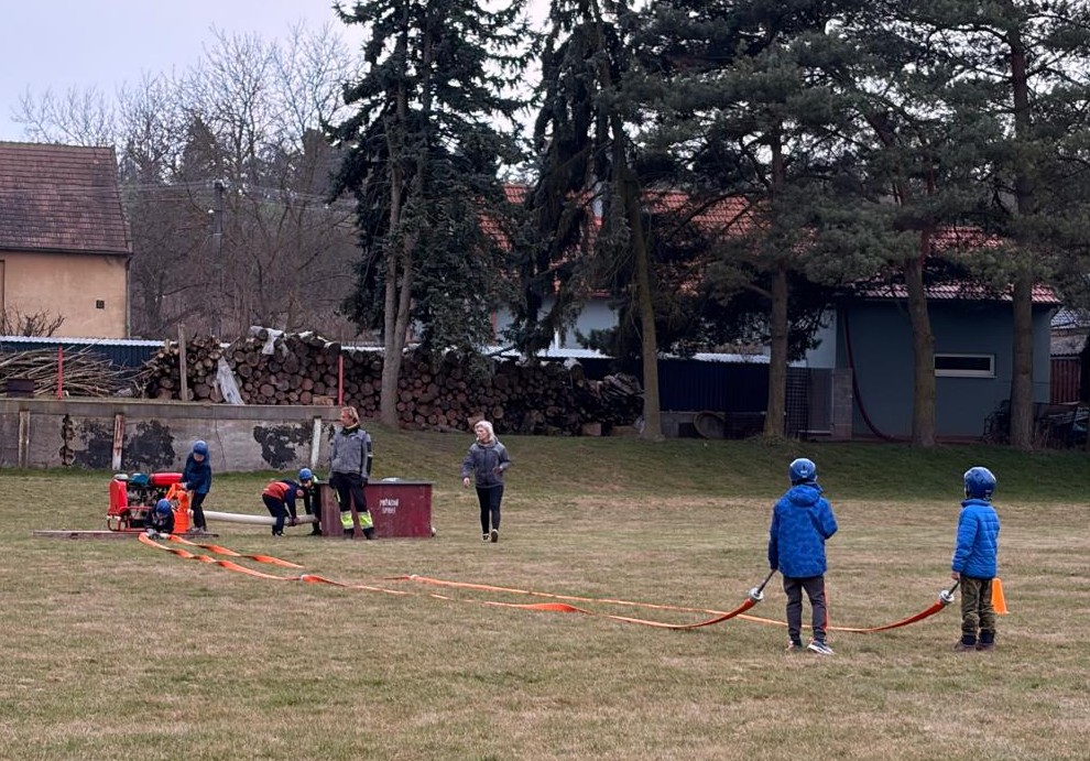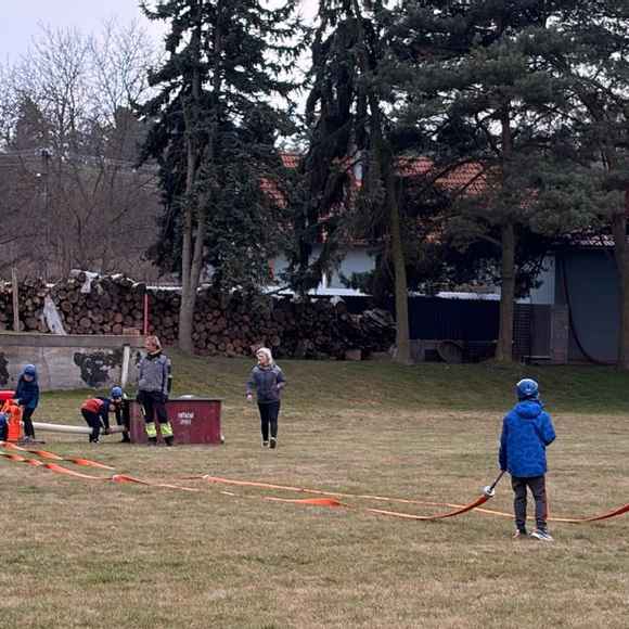 Dne 20.03.2026 se nás sešlo tolik, že jsme trénovali rovnou na dvou tratích a ještě jsme měli náhradní cvíko pro ty, co přebývali. No, paráda! Mladší trénovali štafetu požárních dvojic, starší požární útok, ostatní trénovali starty a motání hadic. Pěkně jsme se mezi sebou na štafetě a hadicích střídali a že nám to šlo! A pak nastal ten okamžik! Starší nás pozvali na trať, každý si vzal jednoho z nás mladších na starost a už jsme společně běželi! Bylo to fajn, kamarádi nám vysvětlili, co uměli. Pak jsme se prohodili, my mladší jsme běhali požární útok a starší štafetu, zbytek zase motal hadice - jak oblíbená činnost! Haha. Na závěr posklízet materiál, pěkně do pozoru na nástup a domů. A příští týden zase AHOOOJ!!!