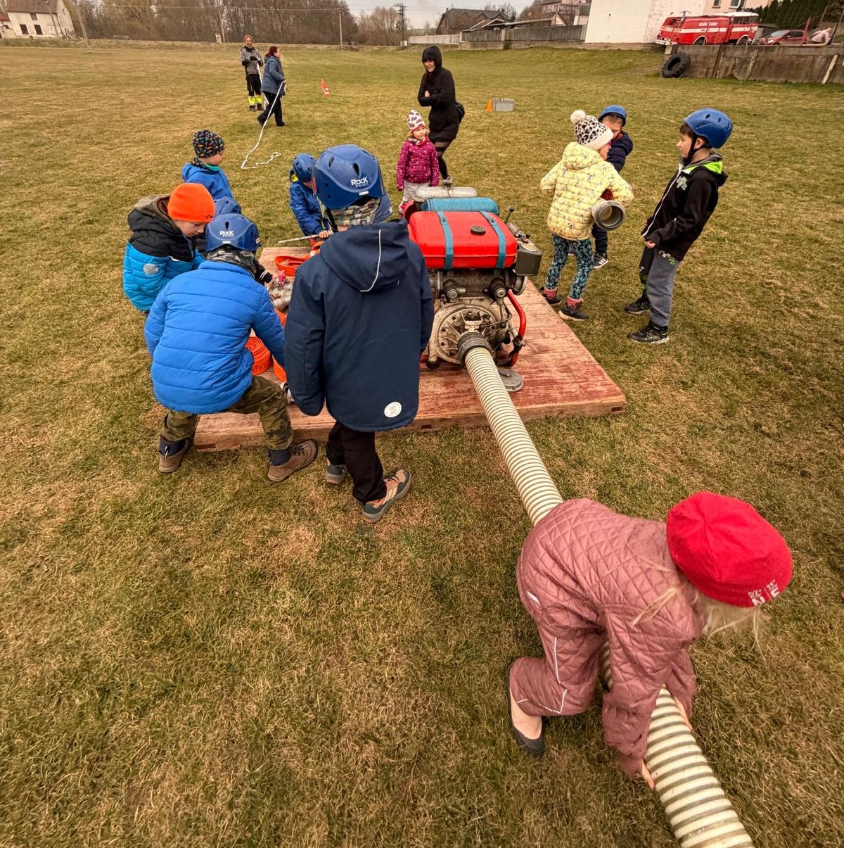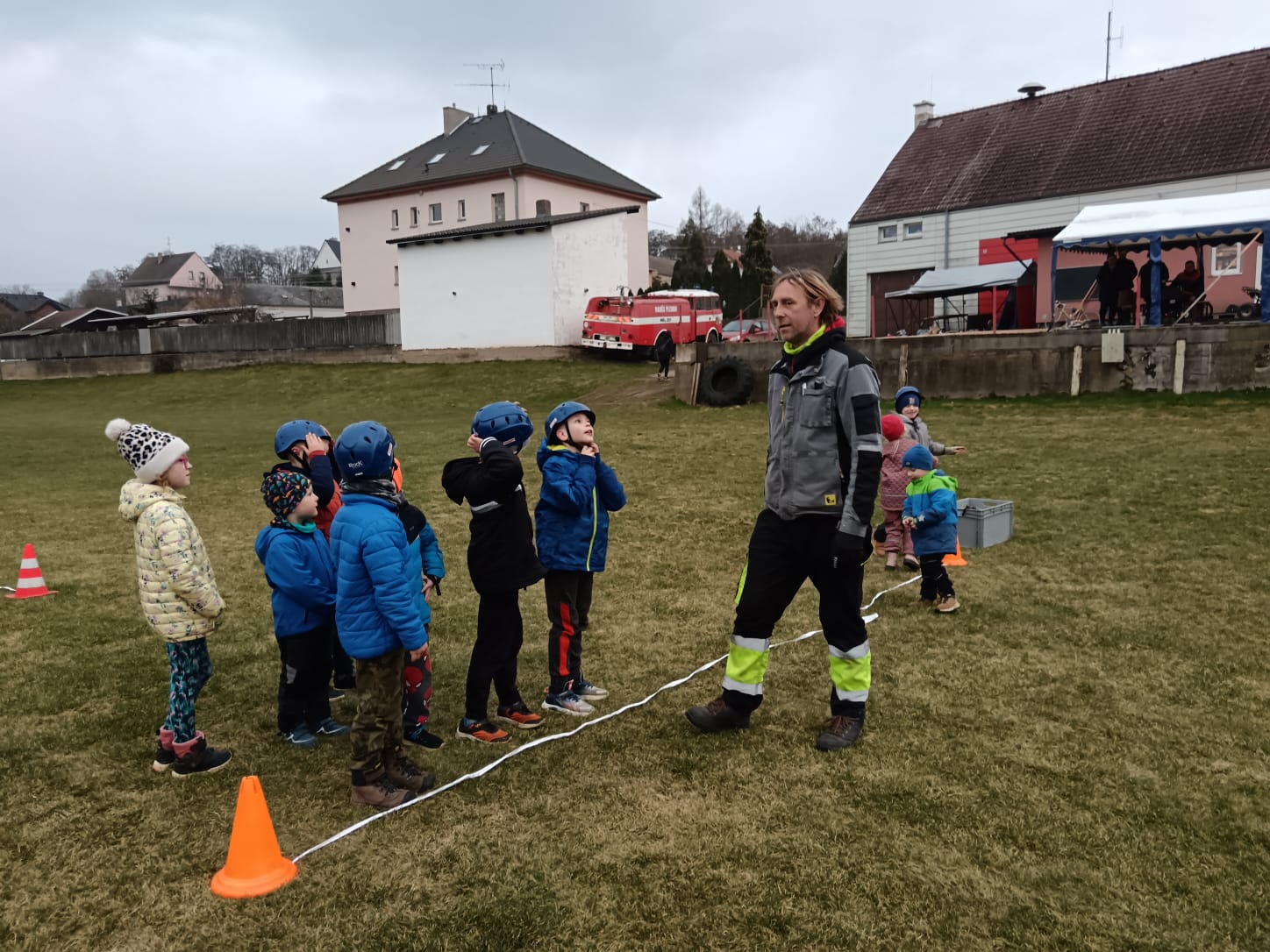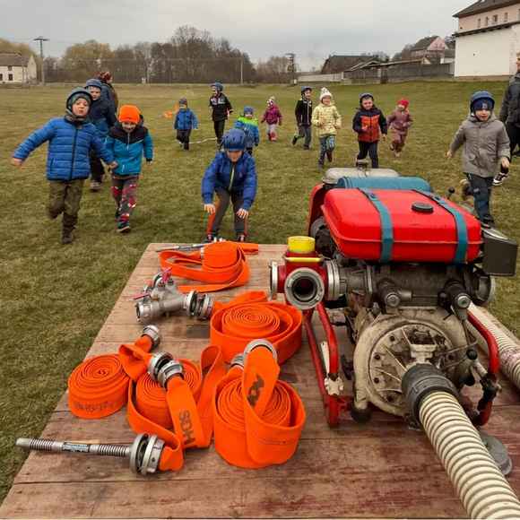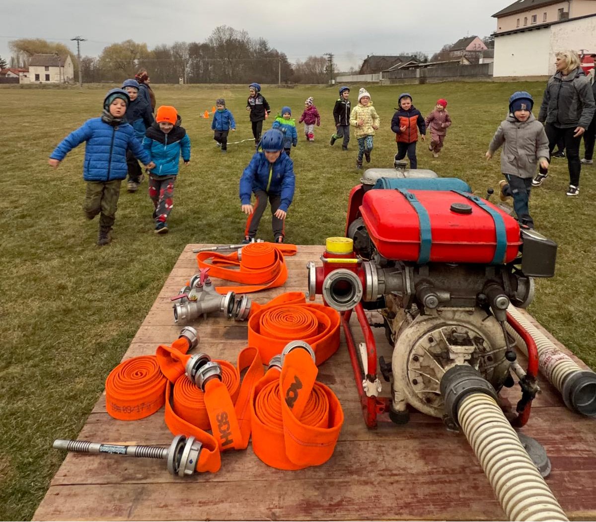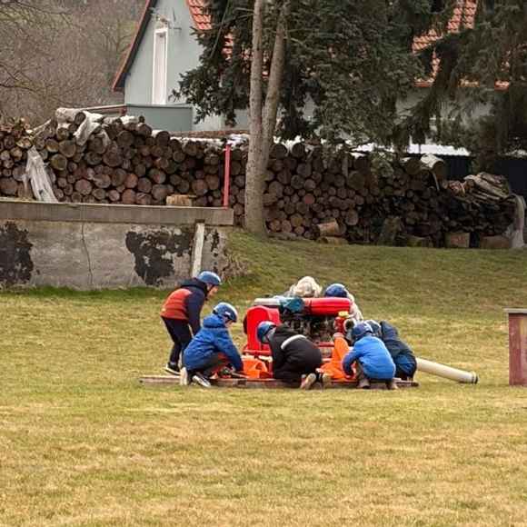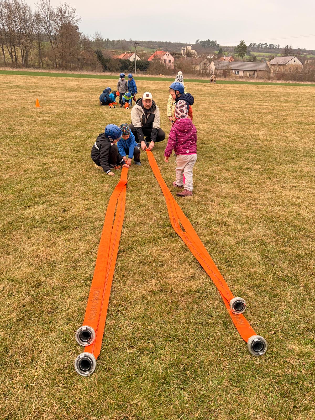 Dne 20.03.2026 se nás sešlo tolik, že jsme trénovali rovnou na dvou tratích a ještě jsme měli náhradní cvíko pro ty, co přebývali. No, paráda! Mladší trénovali štafetu požárních dvojic, starší požární útok, ostatní trénovali starty a motání hadic. Pěkně jsme se mezi sebou na štafetě a hadicích střídali a že nám to šlo! A pak nastal ten okamžik! Starší nás pozvali na trať, každý si vzal jednoho z nás mladších na starost a už jsme společně běželi! Bylo to fajn, kamarádi nám vysvětlili, co uměli. Pak jsme se prohodili, my mladší jsme běhali požární útok a starší štafetu, zbytek zase motal hadice - jak oblíbená činnost! Haha. Na závěr posklízet materiál, pěkně do pozoru na nástup a domů. A příští týden zase AHOOOJ!!!