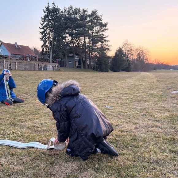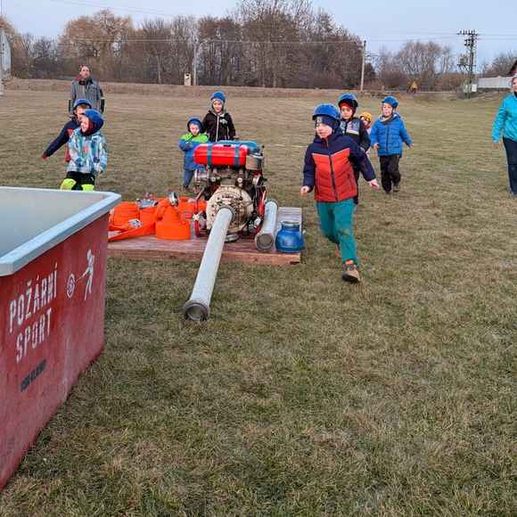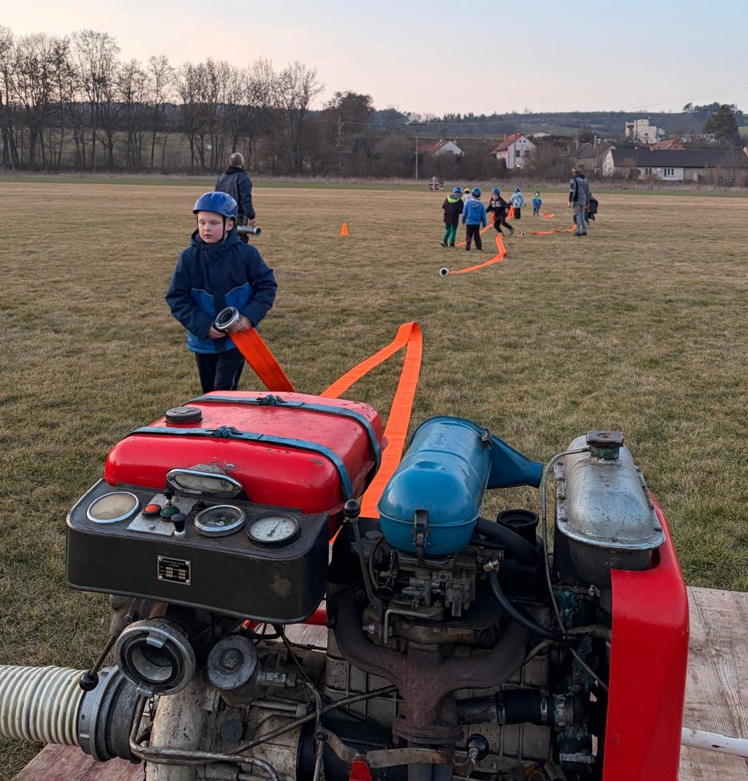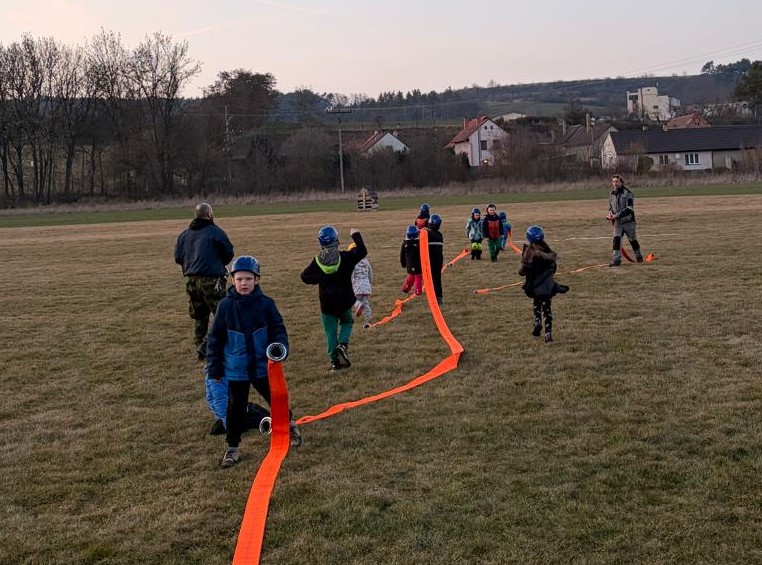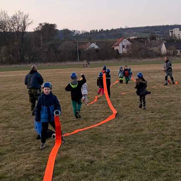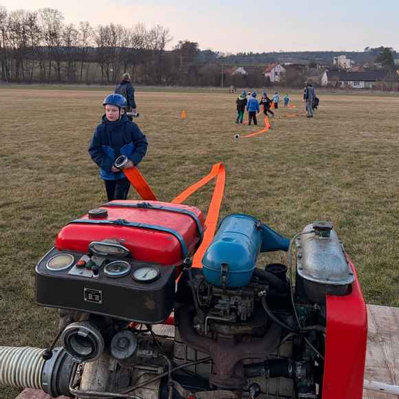 Dne 06.03.2026 jsme měli schůzku po dlouhé zimě opět venku! To bylo bezva! Ať si dospěláci říkají co chtějí, 130 C je parádní teplíčko, zvlášť když svítí slunce, běháme a dáme si pěkně do trika. Nástup, rozcvička a už to jelo! Sedm tvoří družstvo, ostatních pět motá hadice. A po chvilce pěkně vystřídat, ať si každý vyzkouší všechno, hasič musí obstát v plnění každého úkolu. Když nám hodina tréninku uběhla jako nic, už nebylo tak teplo, tak jsme rychle všechno uklidili a na nástupu pěkně nahlas slíbili, že se zase za týden uvidíme - AHOOOJ!