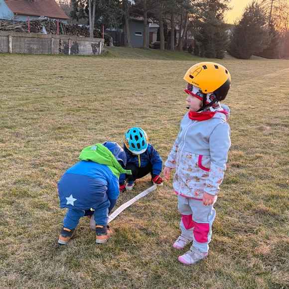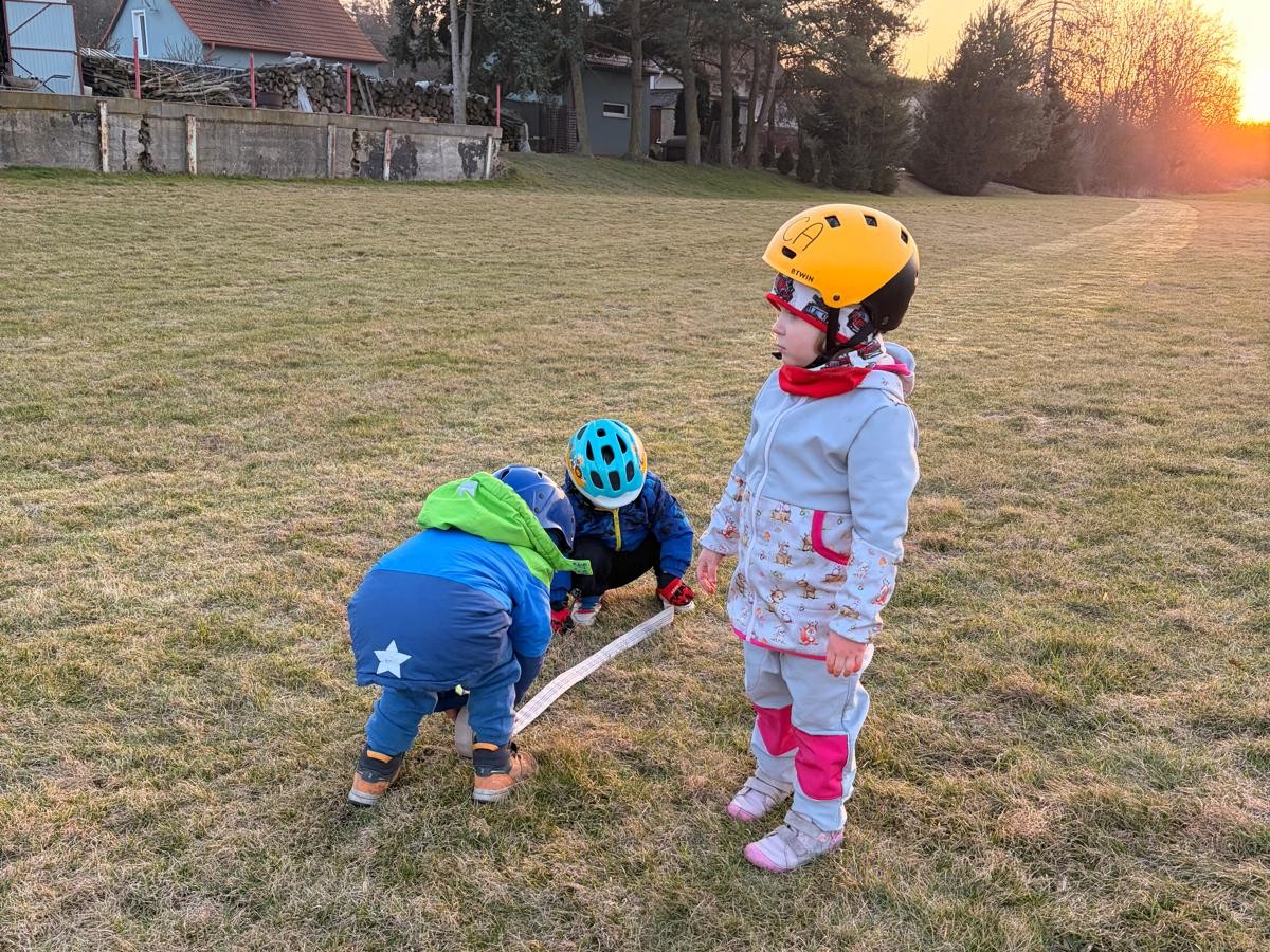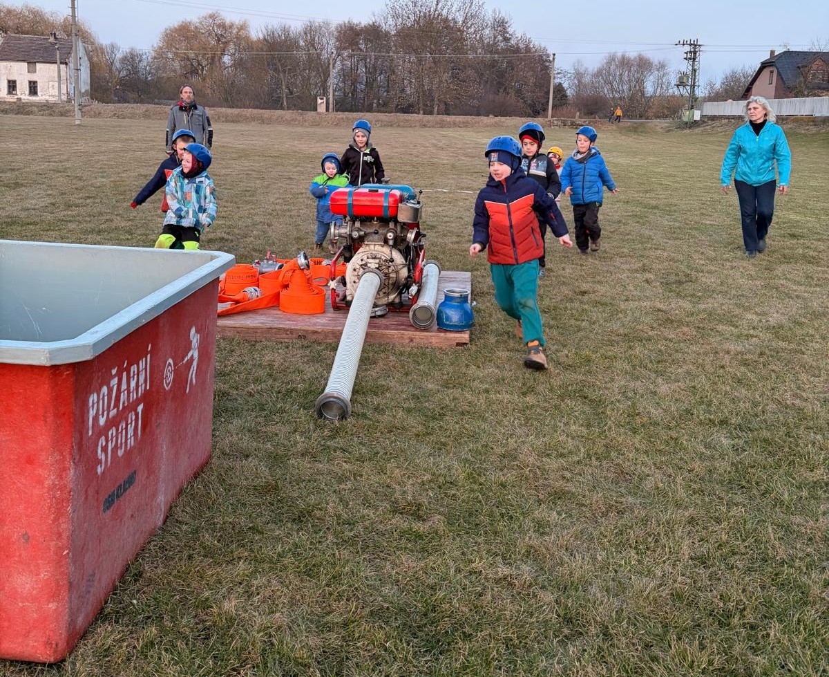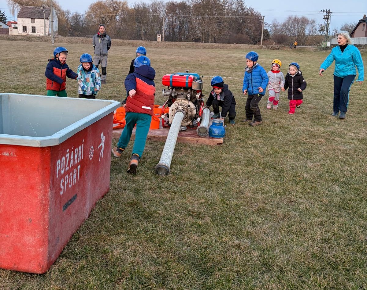 Dne 06.03.2026 jsme měli schůzku po dlouhé zimě opět venku! To bylo bezva! Ať si dospěláci říkají co chtějí, 130 C je parádní teplíčko, zvlášť když svítí slunce, běháme a dáme si pěkně do trika. Nástup, rozcvička a už to jelo! Sedm tvoří družstvo, ostatních pět motá hadice. A po chvilce pěkně vystřídat, ať si každý vyzkouší všechno, hasič musí obstát v plnění každého úkolu. Když nám hodina tréninku uběhla jako nic, už nebylo tak teplo, tak jsme rychle všechno uklidili a na nástupu pěkně nahlas slíbili, že se zase za týden uvidíme - AHOOOJ!
