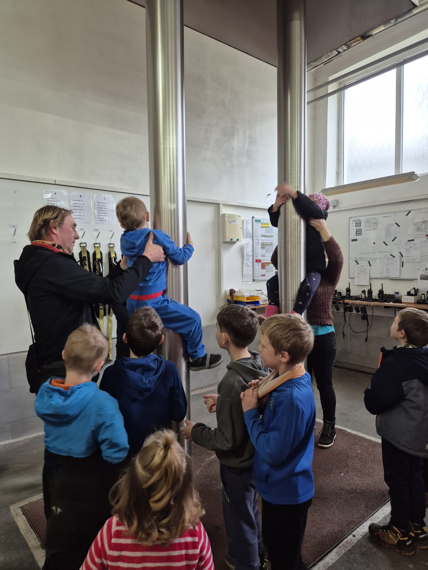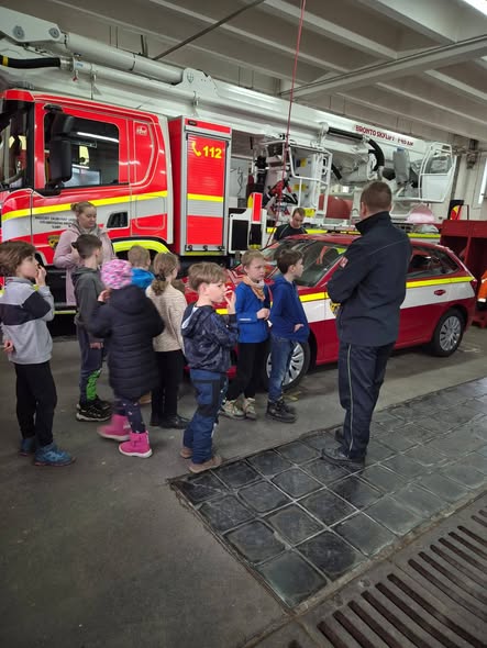 Dne 28.02.2026 jsme vyrazili k "profíkům" do Slaného. Na exkursi v Hasičské stanici Slaný jsme se moc těšili. Už jenom ten začátek - odjezd plánovaný od Hasičárny v Plchově v 08:30, hemžení před hasičárnou - kdo z kamarádů jede, kdo vedle koho bude sedět v hasičském Fordu a kdo pojede doprovodným autem, ta legrace, když někdo dobíhá na poslední chvíli, co si kdo propašoval do batohu... A pak samotná exkurse, to bylo bezva - profesionální hasiči nám ukázali, jak vypadá zázemí hasičů, používaná technika, dozvěděli jsme se spoustu zajímavostí o chodu stanice, o výjezdech. Dokonce jsme si mohli vyzkoušet, jak se jezdí po hasičské tyči! Tedy, spíše jak se na ní pár sekund udržet :). Hodina utekla jako nic, na závěr nám zodpověděli naše zvídavé otázky a už se jelo domů. Cesta zpět je báječná na svačinku a hlavně spoustu vyprávění, kdo co viděl, co ho zajímalo a jak budeme všichni hasiči, až budeme velcí!