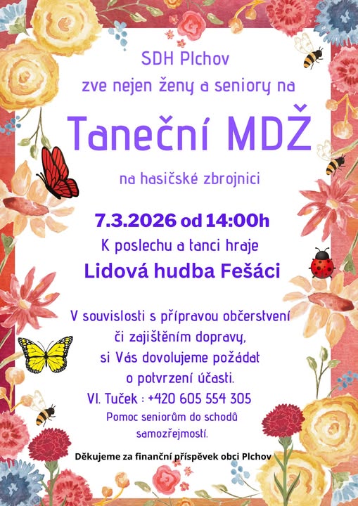 SDH Plchov 07.03.2026 přivítal ve 14h na oblíbené akci "Taneční MDŽ" jak dámy, tak i pány, a to bez rozdílu věku! A kdo nás vytáhl na parket? Lidová hudba Fešáci táhla zábavu až do 17h. Tak má vypadat správná oslava Mezinárodního dne žen! Možnost setkat se společně, zatančit si a dobře se bavit, využilo již tradičně cca 50 lidí nejen z Plchova, ale i z okolí. K dobré náladě přispěl i dortík a kytička, kterou, jako každý rok, obdržely oslavenkyně od hasičů na cestu domů. Už teď se těšíme na příště!