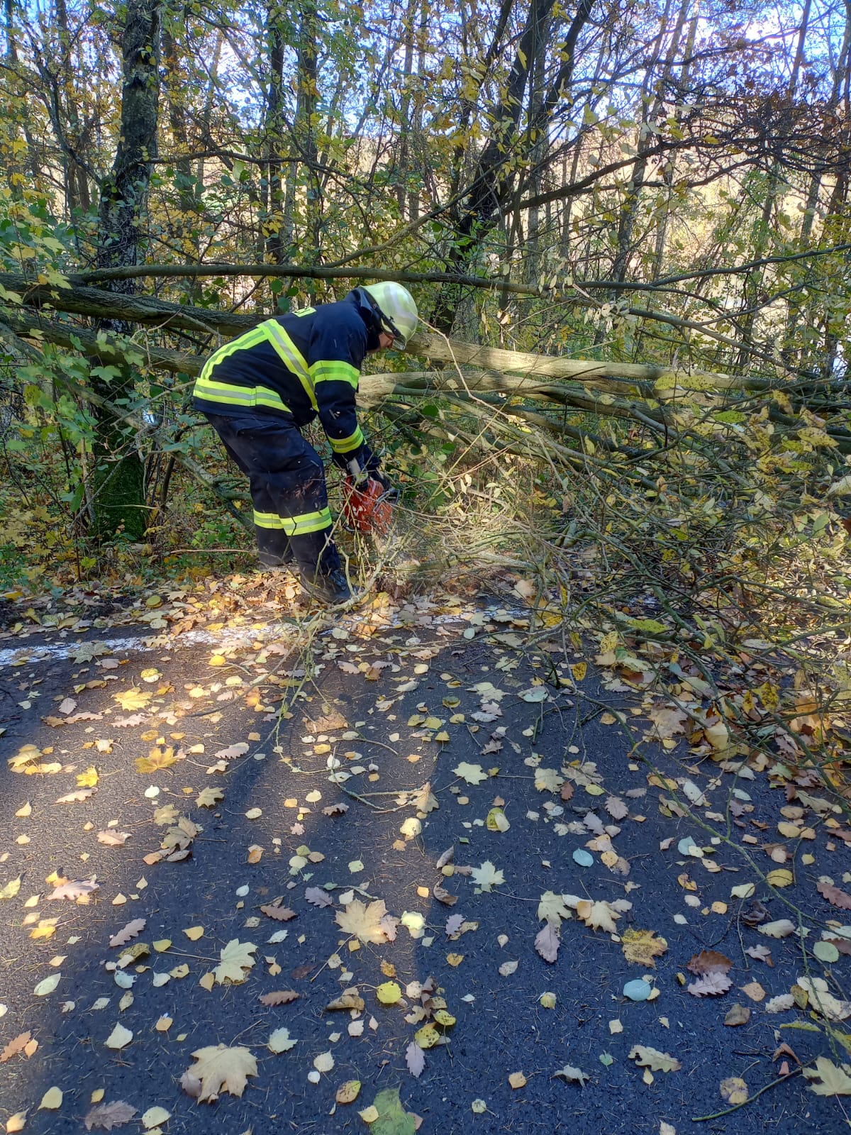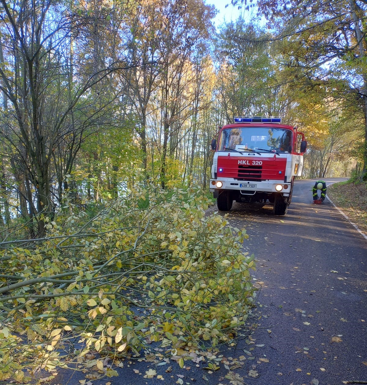 Dne 30.10.2025 po vyhlášení poplachu vyjela jednotka s CAS 32 T815 k stromu blokujícímu komunikaci u rybníka mezi Plchovem a Pozdní. Jednotka v této souvislosti zajistila řízení provozu na komunikaci, rozřezání stromu a následně úklid vozovky, cesta byla zprůjezdněna. Jednotka se vrátila zpět na základnu.